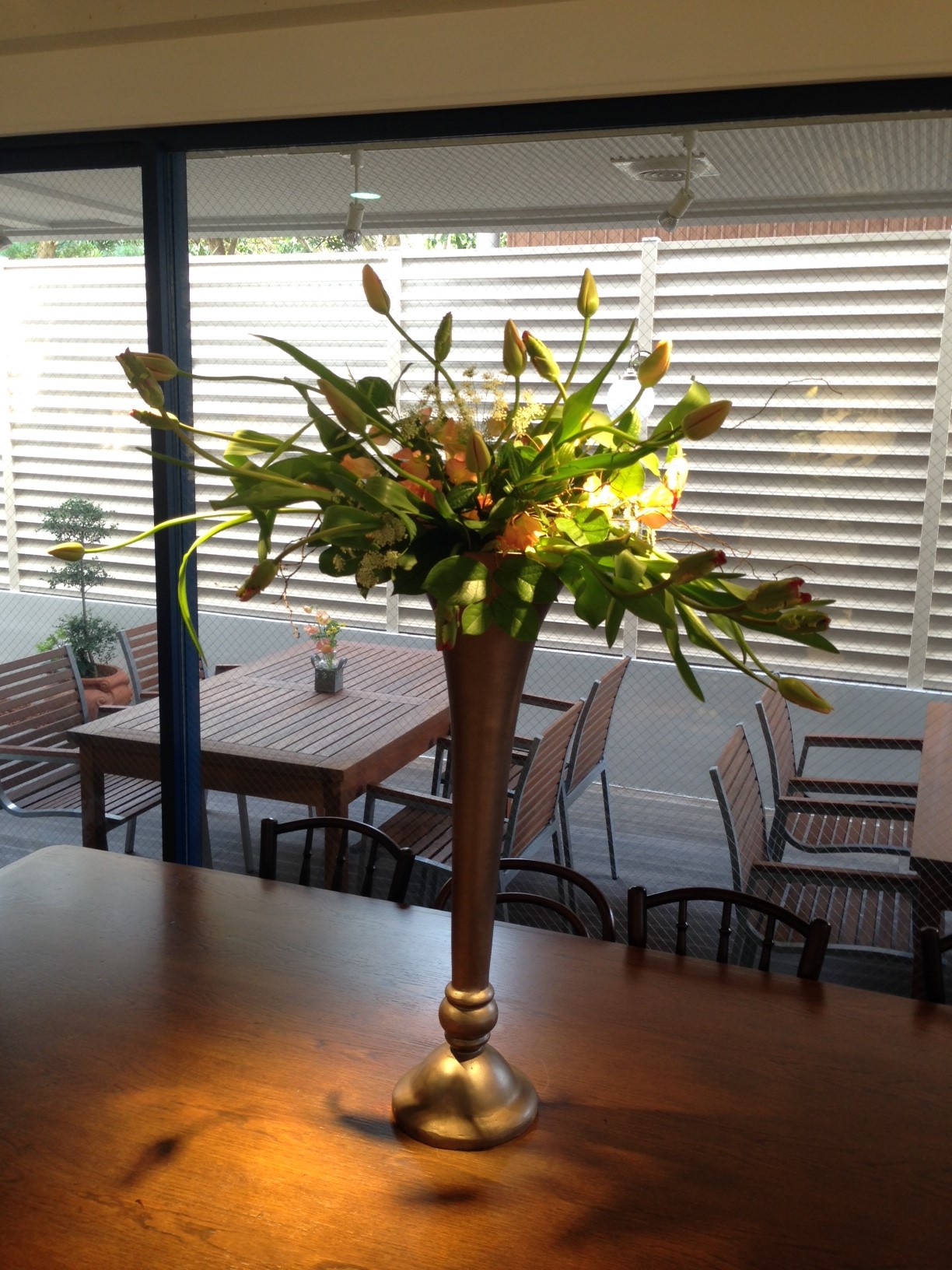 チューリップのアプリコットビューティーとフレミングパーロット。