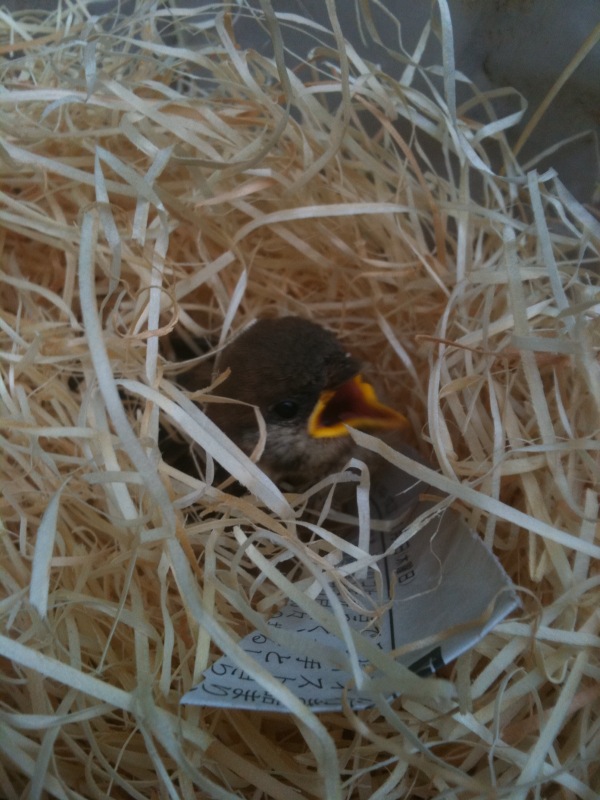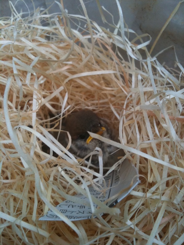 出来れば巣に返したいのですが・・・・今も親鳥が捜しております。