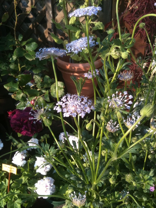 バラが咲き、オルラヤやブルーレース、オンファロデスなどなど。