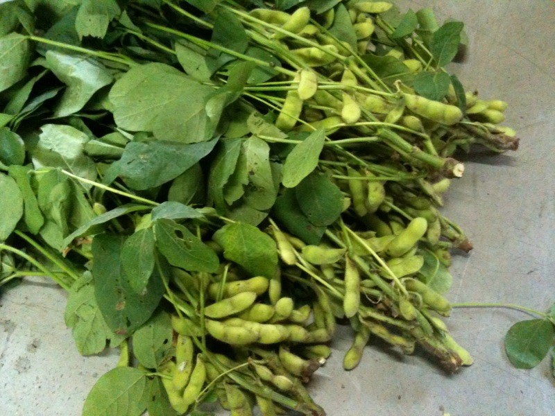 外仕事を終えてお店に帰ると、お隣さんから枝豆のおすそ分け!