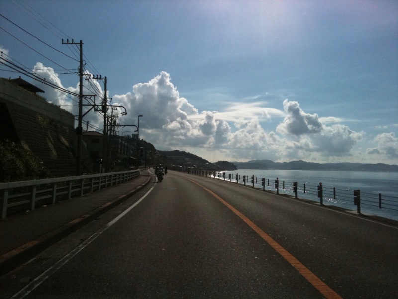 お盆休みもあってか、朝から湘南海岸は車が多く