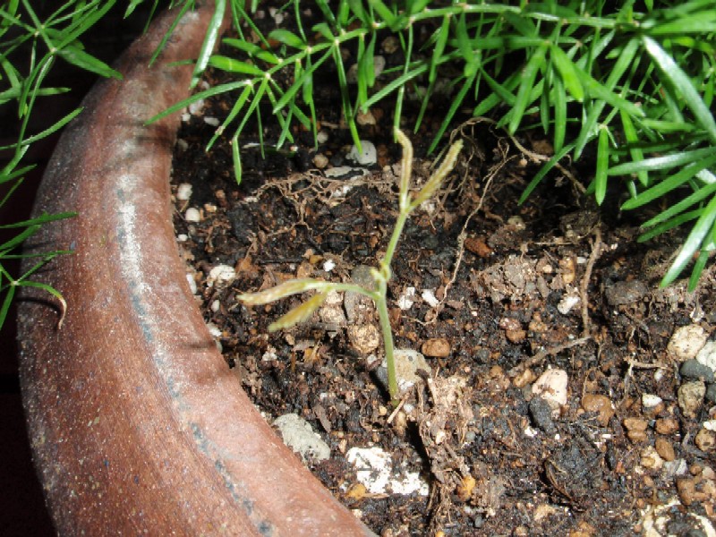 種を植えてから三週間ほど。エバーフレッシュの種が発芽したのです!