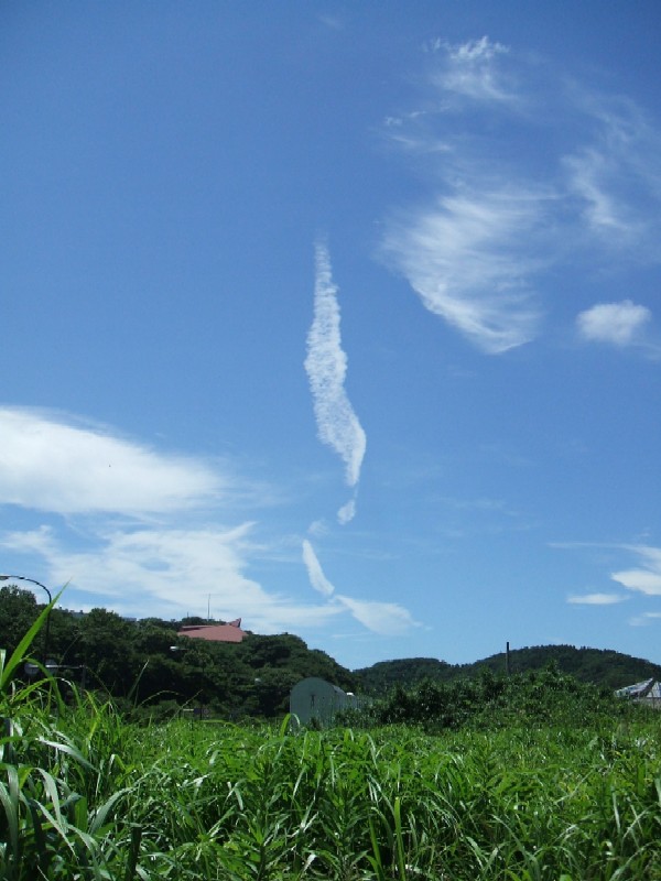 海の方には筆をすらすら~とはしらせたような雲が・・・・。