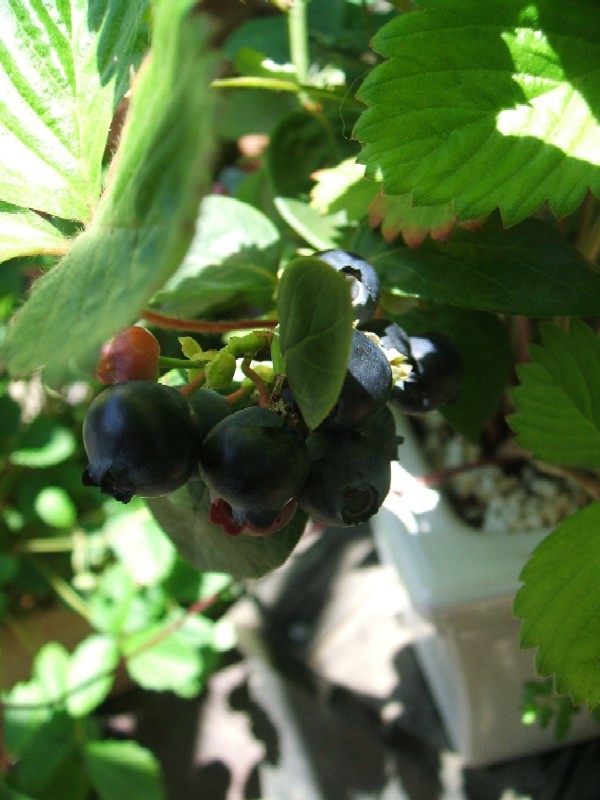お店の実物がだいぶ色づいてきて、ブルーベリーは食べごろ。