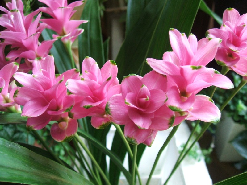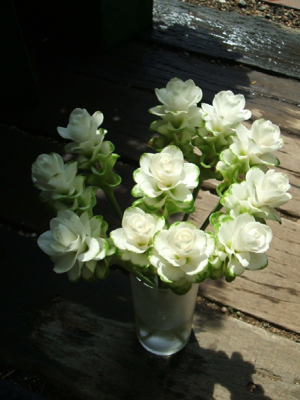 ショウガやウコンの仲間で色づいた苞の中に小さいお花を咲かせます。