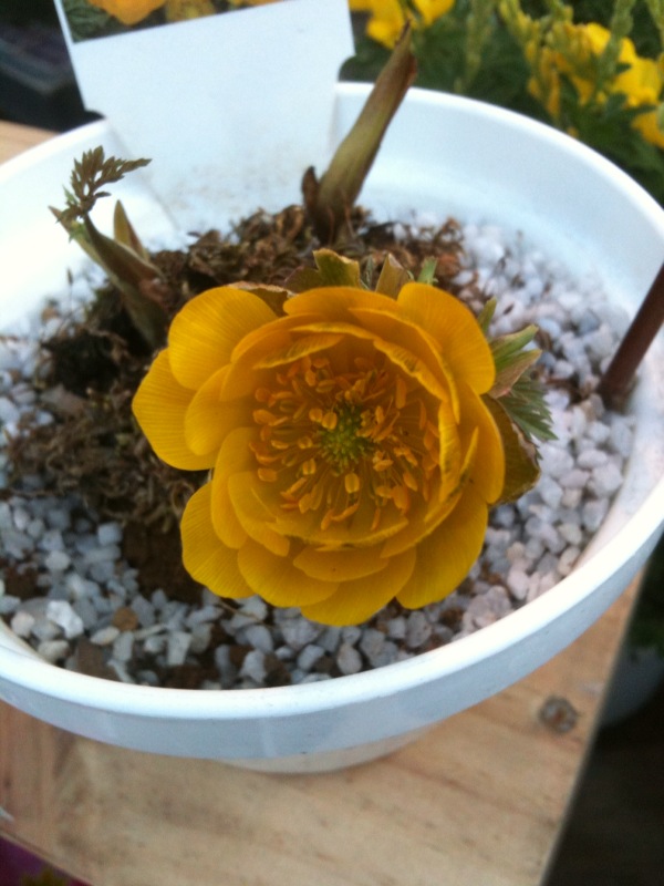 福寿草のかたいつぼみがゆるみ、午後の陽だまりできれいに咲いていました。