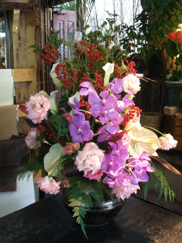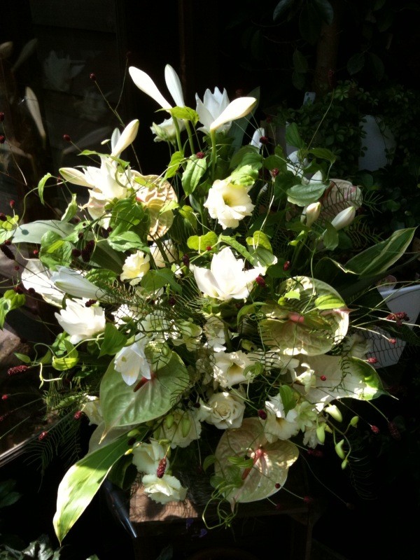 大きいお花が中心ですが、とてもやさしい雰囲気でお花が活けてあります。