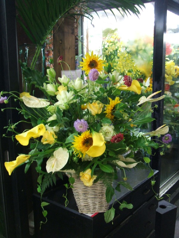 カラーとヒマワリを使って動きのある、