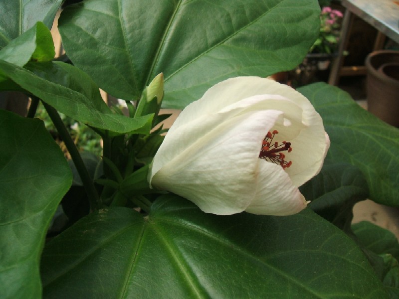 以前ご紹介した原種のハイビスカス「ワイメイア」が開花しました!