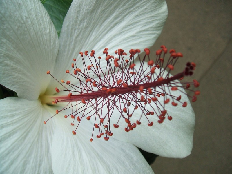 真っ白なお花に赤というか、濃いピンクというか花柱がきれいに映えます。
