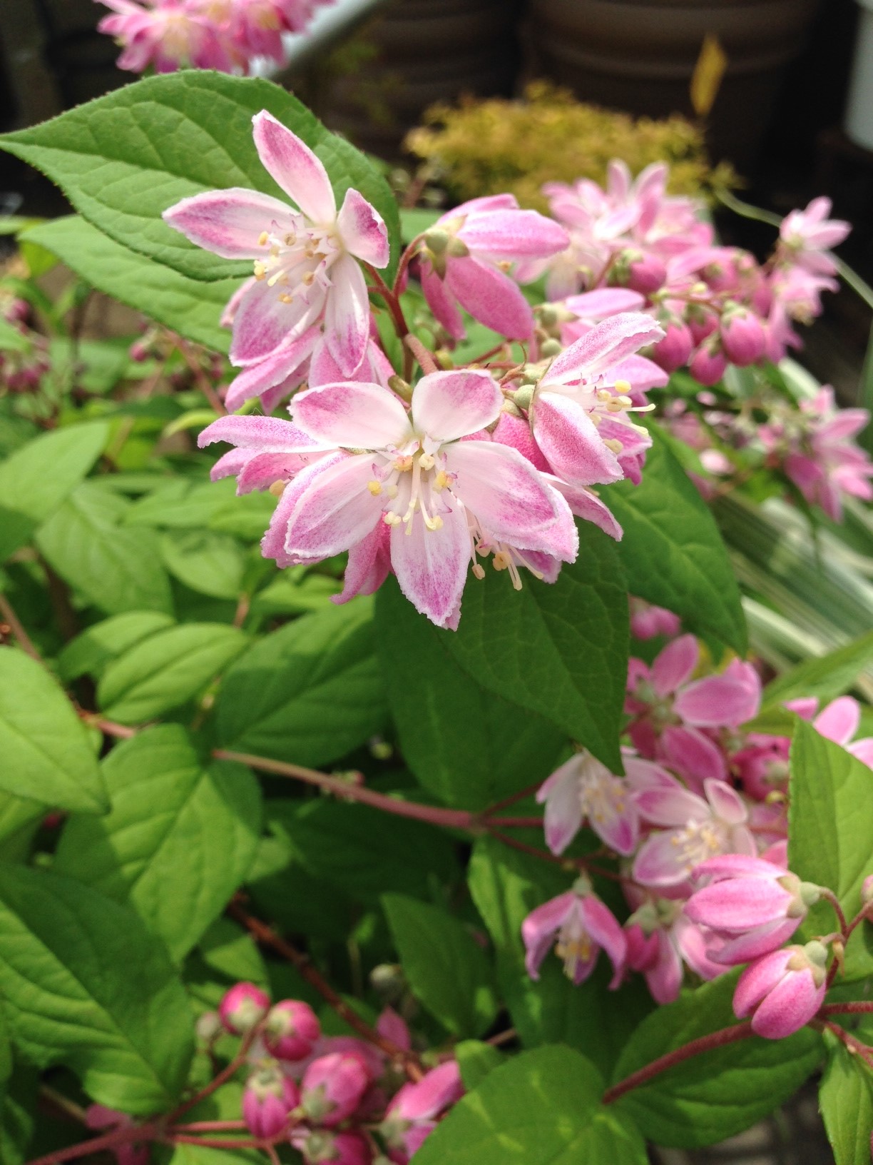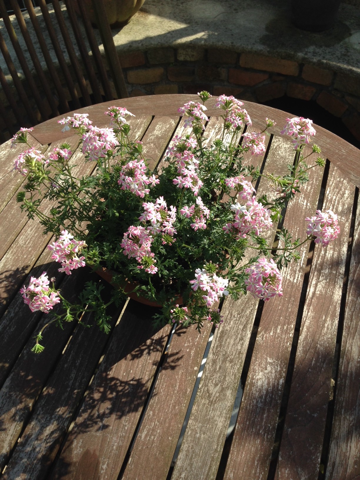 ハッピークローバーに続きテラスのテーブルのお花。