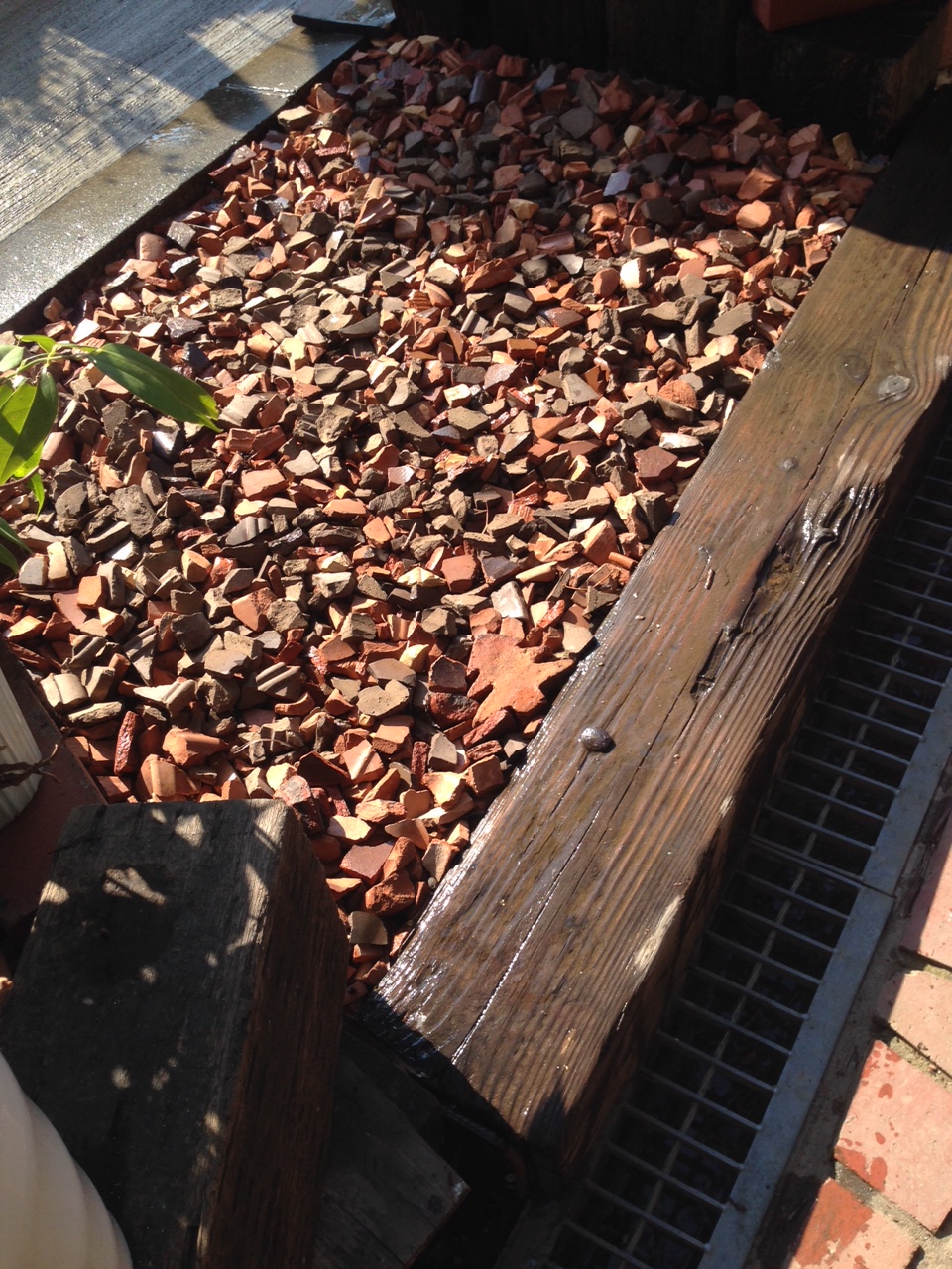 そこで割れたテラコッタを細かく砕き敷き詰めてみました。